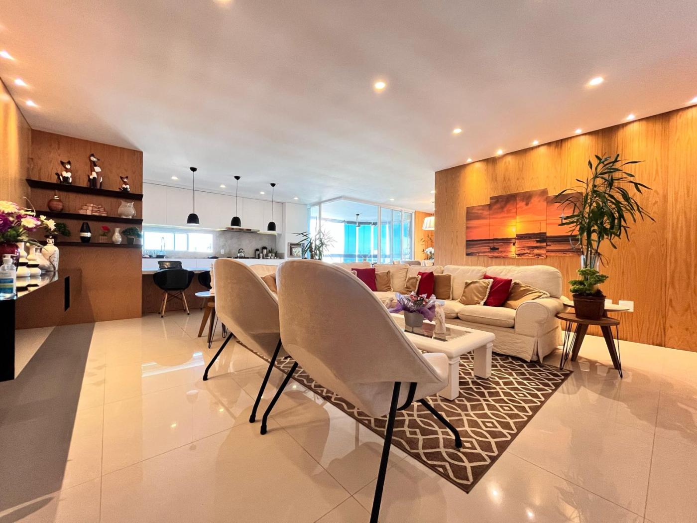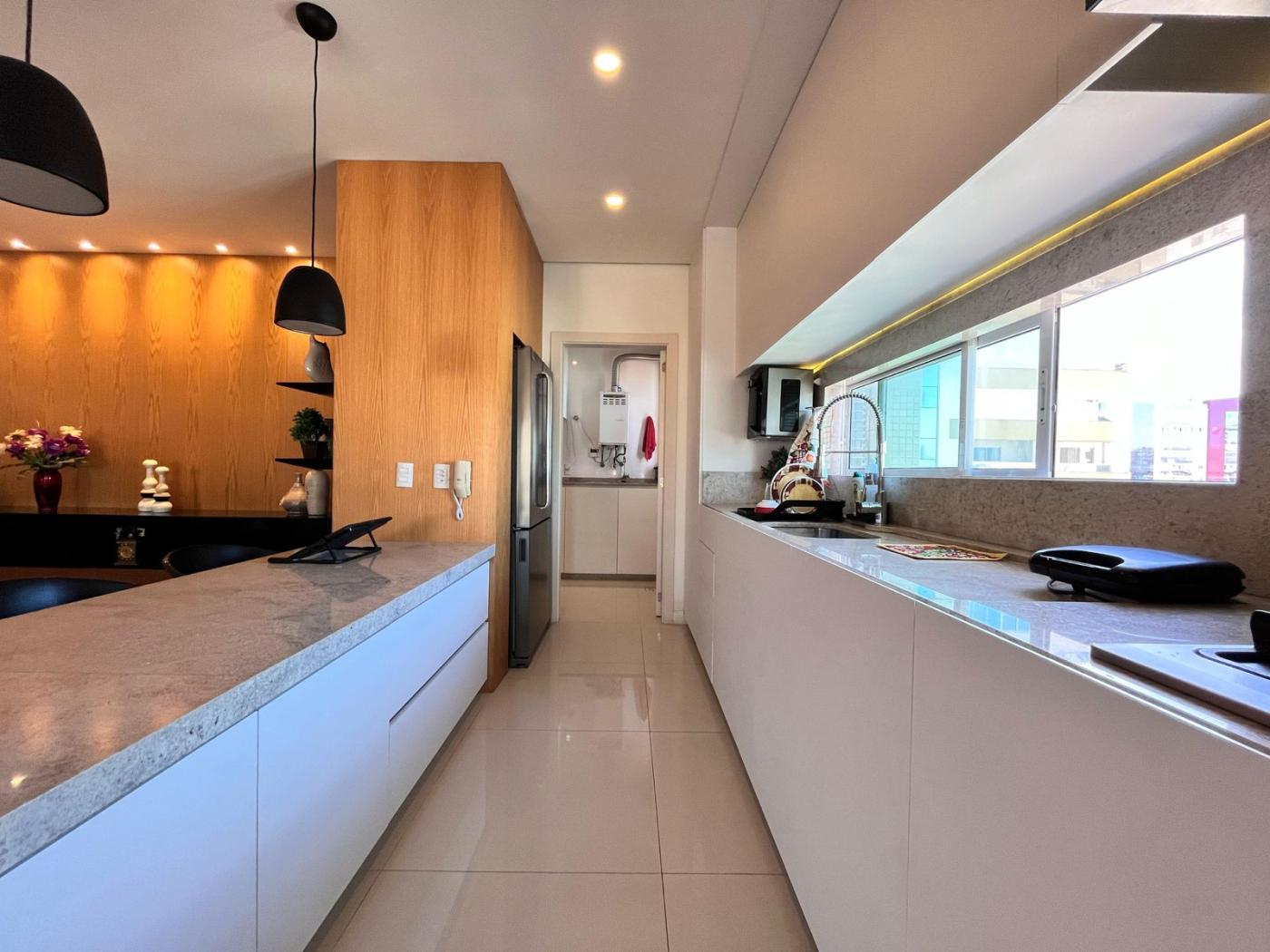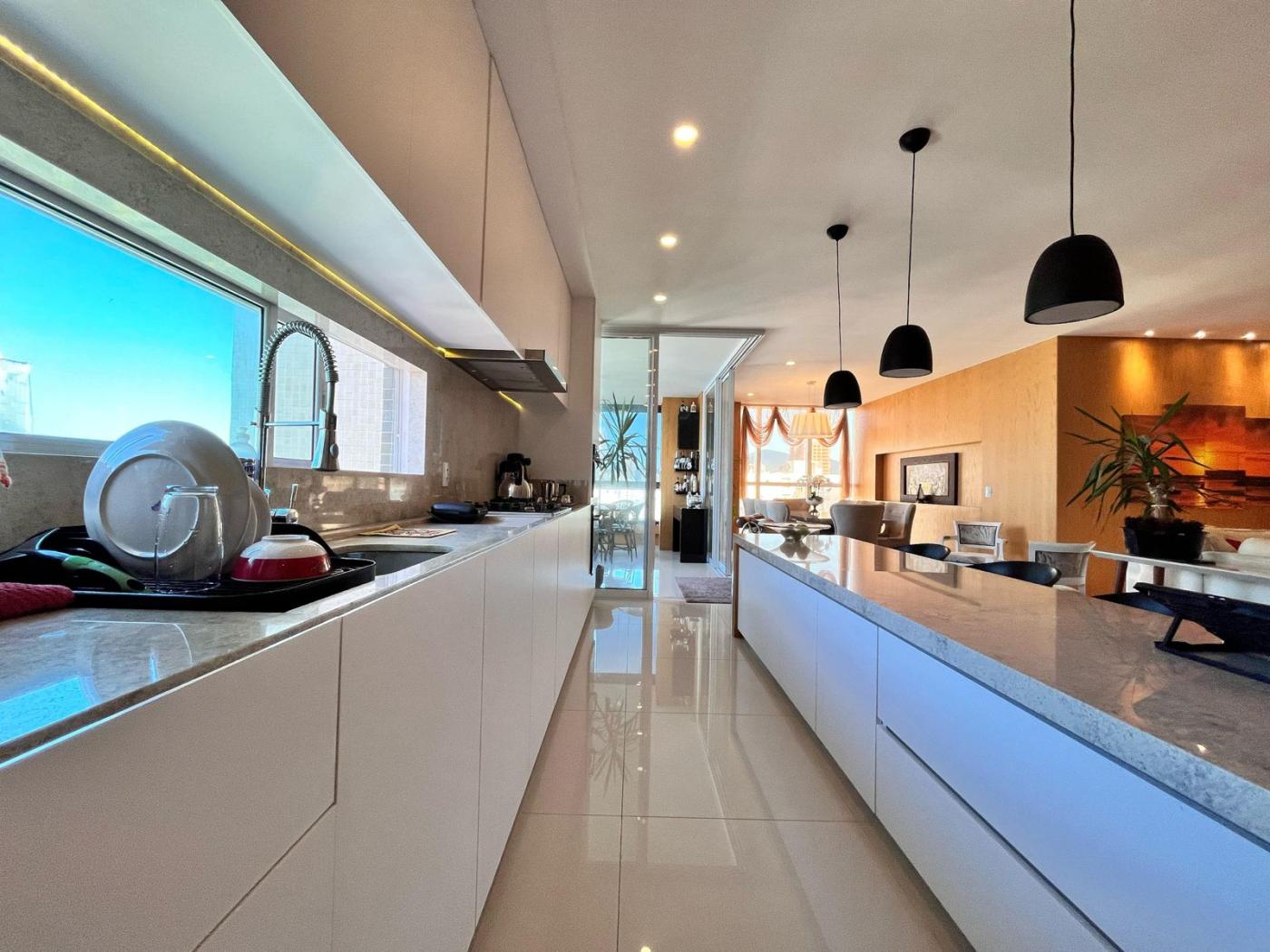 Localizado na segunda quadra, rua reta ao mar, empreendimeto de alto padrão, finalmente mobiliado e equipado, amplo living com vista mar.