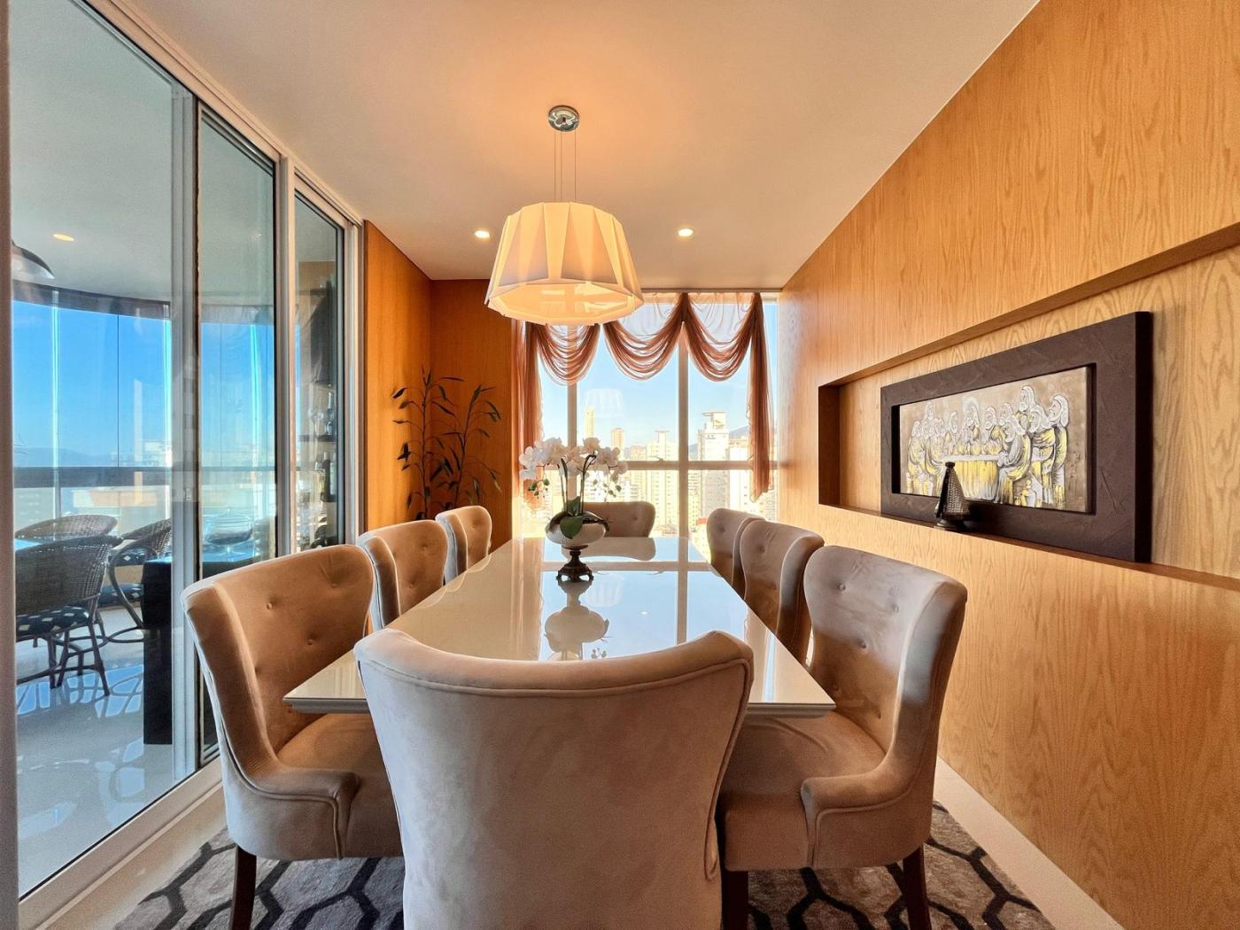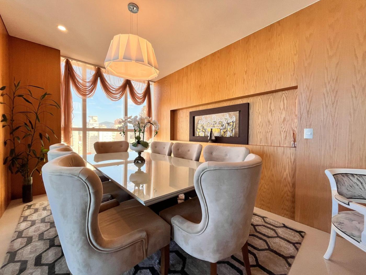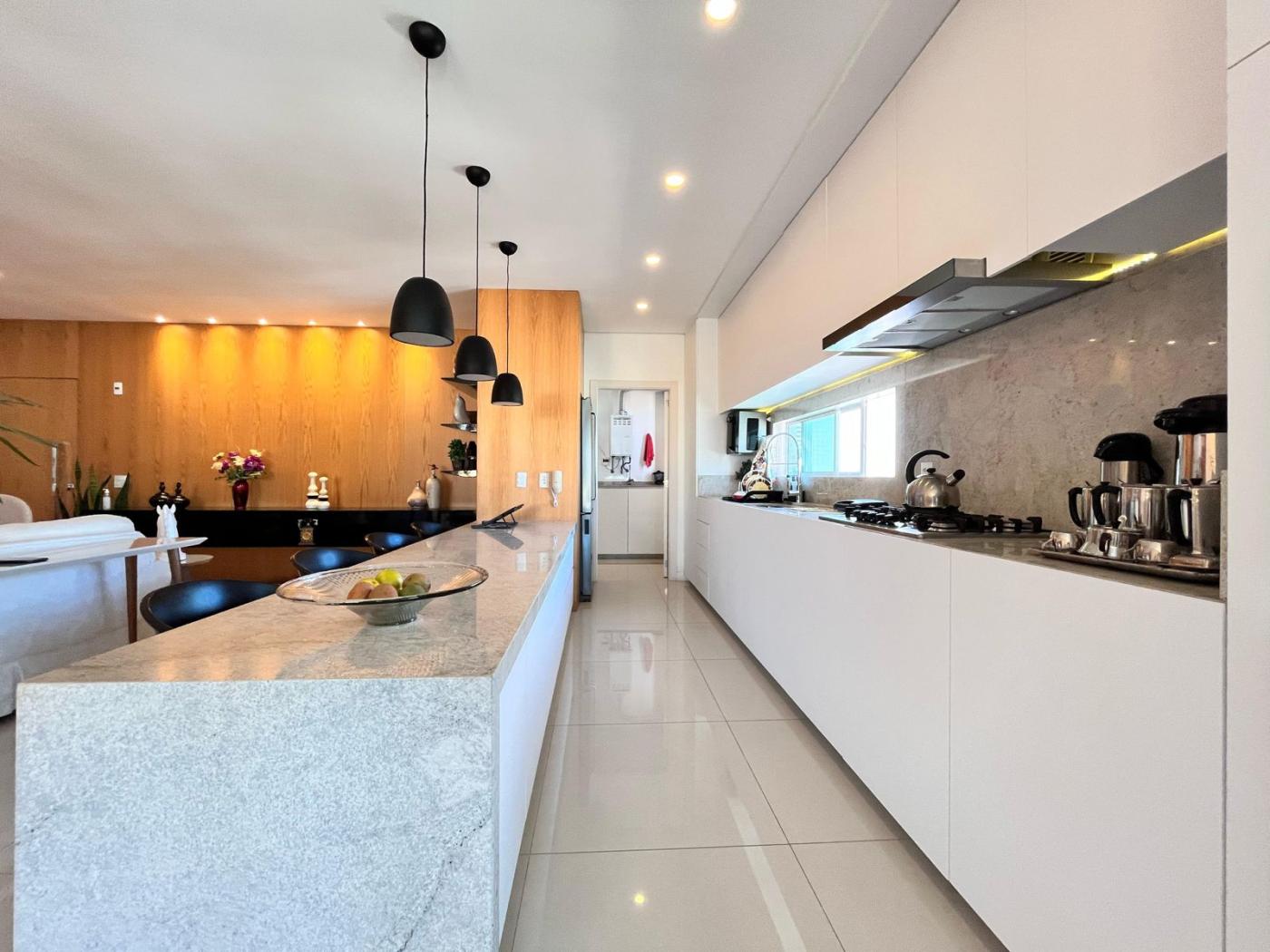 Localizado na segunda quadra, rua reta ao mar, empreendimeto de alto padrão, finalmente mobiliado e equipado, amplo living com vista mar.