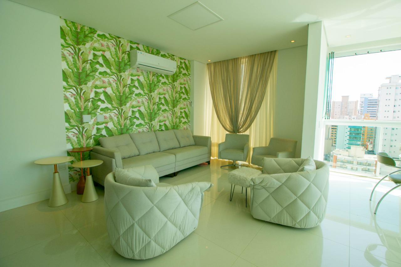 Localizado na segunda quadra, rua reta ao mar, empreendimeto de alto padrão, finalmente mobiliado e equipado, amplo living com vista mar.